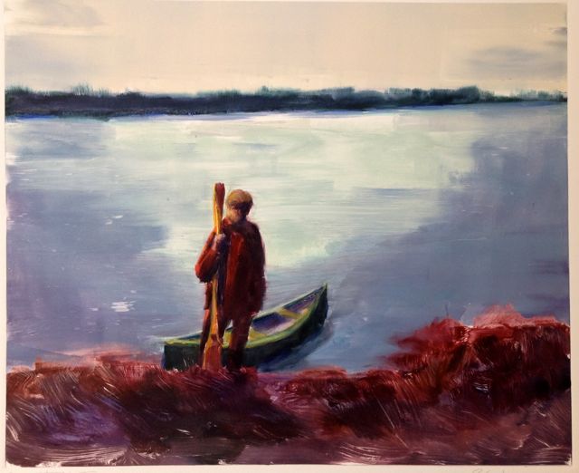 I use this technique because everything about this process is dynamic, breathing life into the image. There is an unlimited choice of tools to paint with; rollers, fingers, rags, brushes… each adding its own gestural quality. These tools can also be used to lift paint, creating subtle light or brilliant whites. The process is fluid, moving back and forth between application and removal of color adding to the liveliness of the image. The painting must be done quickly, as the workability of the inks will diminish after several hours. When the image is complete it will be transferred to paper using carefully adjusted pressure on an etching press. The plate is then wiped clean and the idea exists only on a single piece of paper.